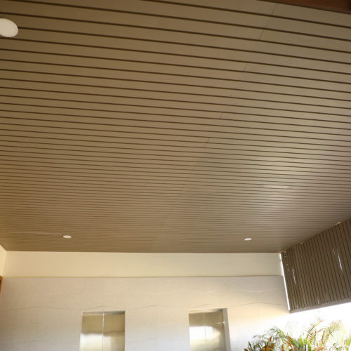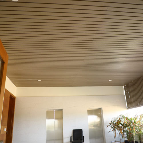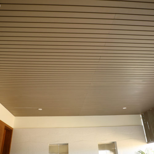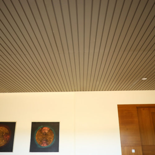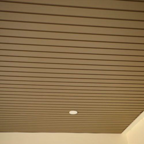 HYPERSIL® Linear 84 C closed ceiling system consisting of 84mm / 184mmwide square shaped panels which can be easily clipped on to a carrier. The Panels have a 25 mm wide flange that closes-off the 16 mm joint between the panels. A wide choice of colours and finishes are available. Panels can be perforated for enhanced acoustics.