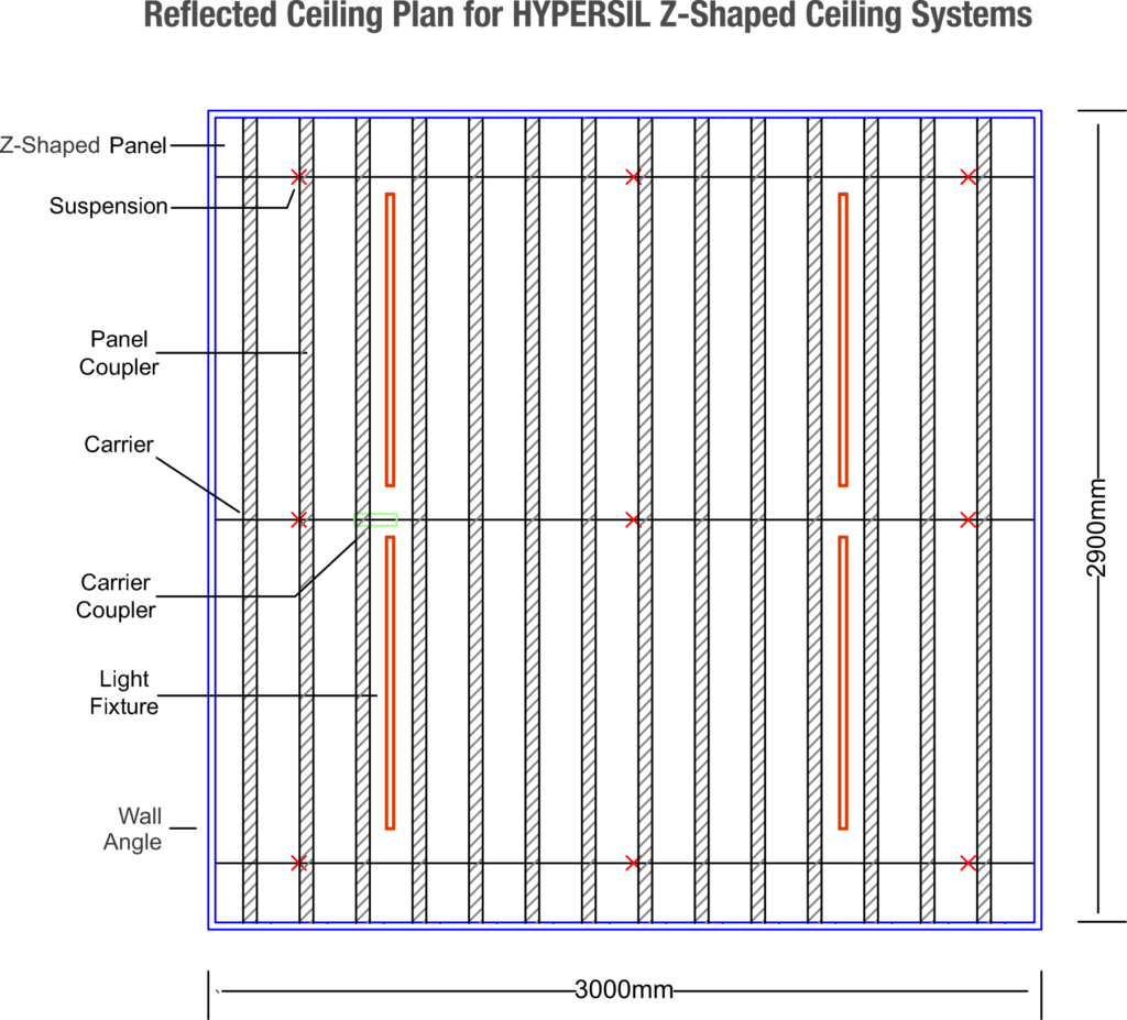 HYPERSIL® make Z Shape In-line type screen ceiling, can adjust the visual height of the house, and can hide all the pipes and other facilities at the bottom of the floor, and also makes the sunlight entering into the room or light soft and uniform. The suspended pieces ceiling will not affect noise-absorbing of the house and the installation of facilities including fire-extinguishing sprinkler, air conditioning systems, etc.,